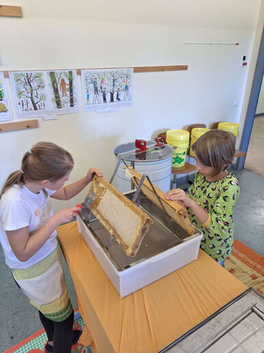 Abbildung 1: Nele und Fiona entdeckeln die Rähmchen (© Jan von Au)