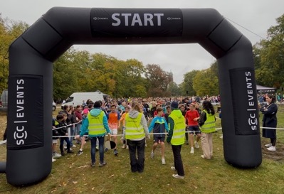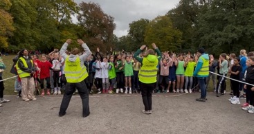 Die Organisation der Startabläufe wurde auch in diesem Jahr von einer kleinen Abordnung unseres Volunteer-Teams übernommen. Vier Mädchen des dritten Semesters geleiteten die insgesamt 1889 teilnehmenden Kinder in Etappen zum Startbogen und schickten sie mit der Startklappe ins Rennen. Die jüngsten Starter der Grundschuljahrgänge konnten sich sogar über ein kleines Warmup im Vorstartbereich freuen...