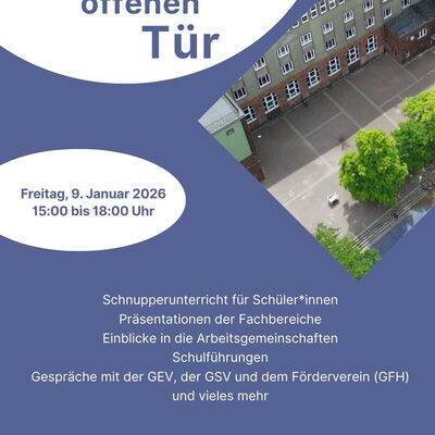 Hier finden Sie das ausführliche Programm mit Schnupperunterricht, Präsentation der Fachbereiche, Einblicke in die Arbeitsgemeinschaften und vieles mehr.