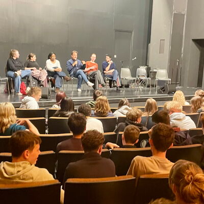 Das Stück wurde mit Spannung verfolgt und traf den Nerv unserer Schüler*innen: Zahlreiche der dort angesprochenen Themen sind auch die ihren. Im Anschluss an die Aufführung fand ein Gespräch mit den Schauspieler*innen und dem Autor statt.