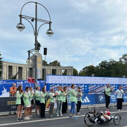 Am Samstag, den 20. September 2025, starteten unsere Herder-Volunteers zu ihrem nächsten Großeinsatz. 33 Mädchen und Jungen der Klassenstufen 8 bis 12 trafen sich um 10.30 Uhr vor dem Bundestag und machten sich auf den Weg zu den zahlreichen Kleiderboxen für den Skater-Marathon. Bei traumhaftem Wetter nahmen sie in der Folgezeit die Kleiderbeutel der Marathon-Skater in Empfang und bewahrten diese zuverlässig auf. Nach 59:27 Minuten lief der Franzose Ewen Fernandez als Sieger über die Ziellinie. Bei den Frauen siegte die Französin Aubane Plouhinec nach 1:16,06 Stunden im Massensprint. Bis 16.30 Uhr waren schließlich alle Kleiderbeutel an ihre Besitzer übergeben und unser Team konnte in den wohlverdienten Feierabend starten.